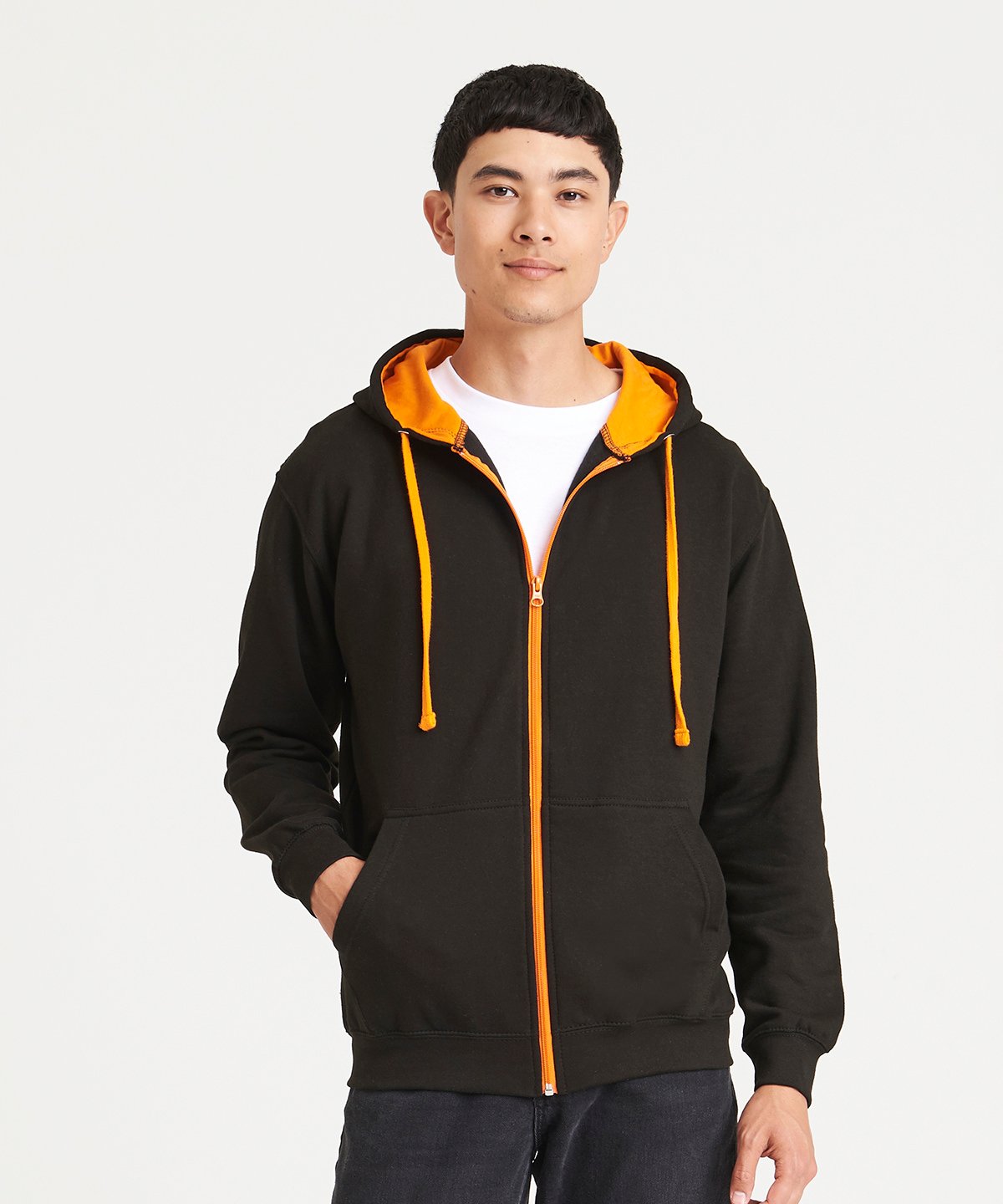 AWDis Varsity Zoodie - There’s a lot to love about this zip-up hoodie. Without being brash, the contrast zip and hood lining give it a little flash of colour, which sets it apart from your run-of-the-mill zoodies. With brushed inner fleece, it’s warm and comfy too. Print your own designs with ease, thanks to the 100% cotton-faced fabric.