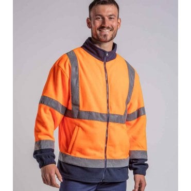 PRO RTX High Visibility Fleece Jacket made from 100% polyester this jacket has a contrast stand-up collar, full-length front zip, two reflective bands around the body, sleeves and across each shoulder, and two front pockets. Custom printed workwear.
